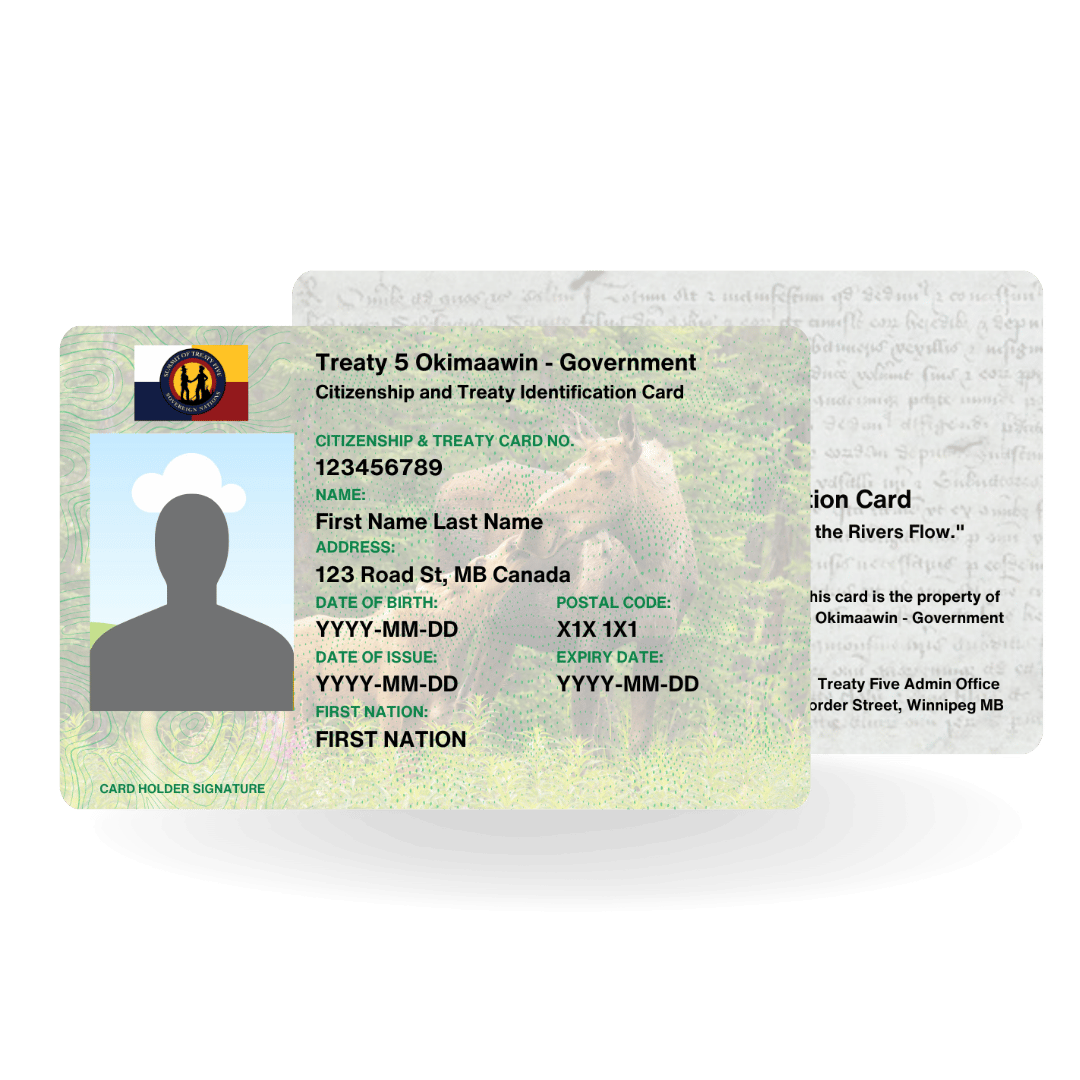 The Treaty 5 is in the process of developing Citizenship cards. The purpose of these cards is to provide the citizens of Treaty 5 identification and a way to assert sovereignty over traditional and ancestral lands; to uphold both inherent and Treaty rights.